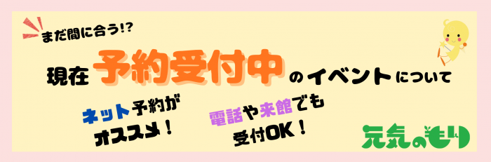 元気のもりで開催するイベントには、事前の<予約受付>が必要なイベントがあります。
