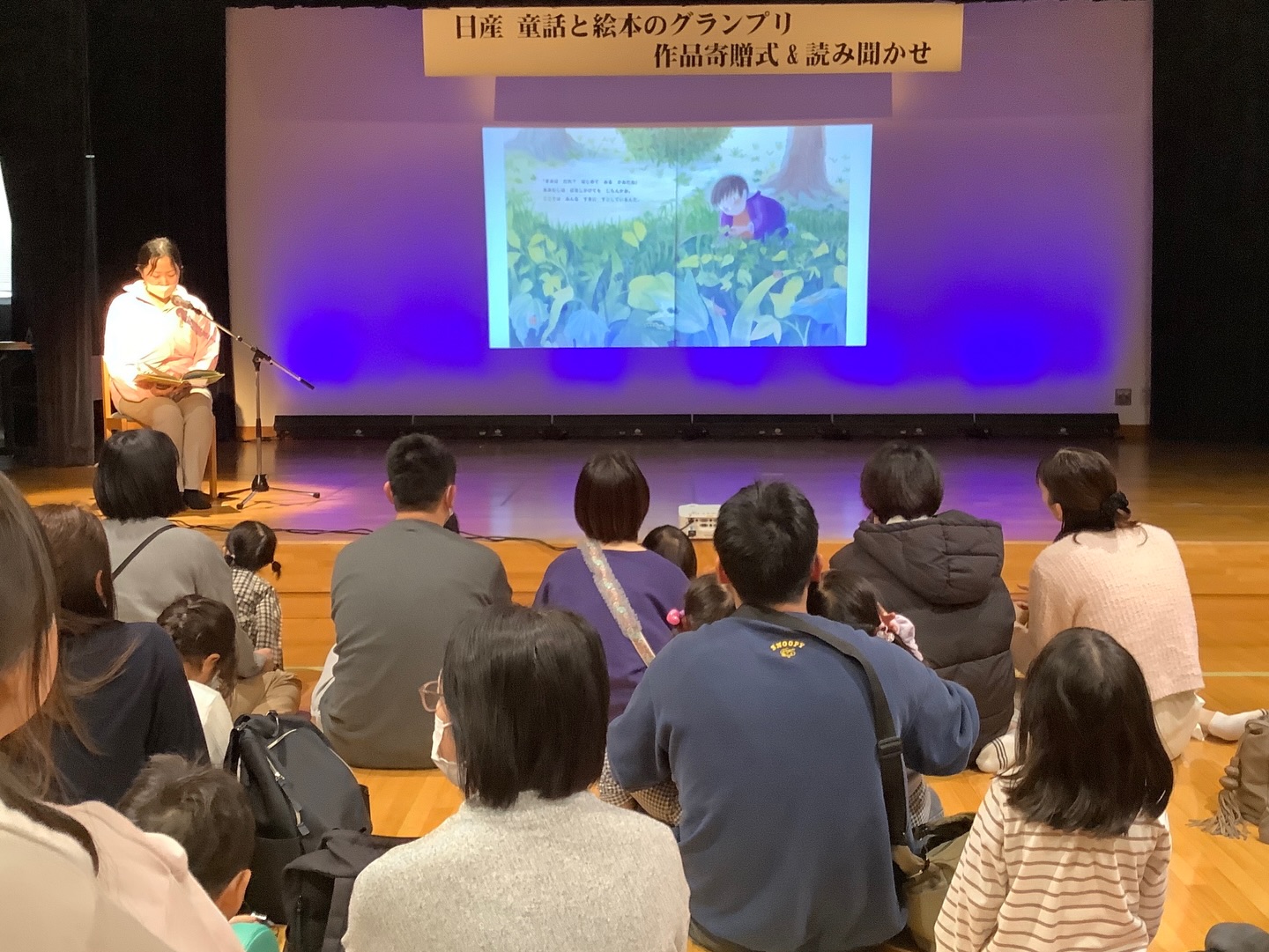 読み聞かせの間、子どもたちは物語にじっと耳を傾け、大人の方もやさしい表情で見守っていました。